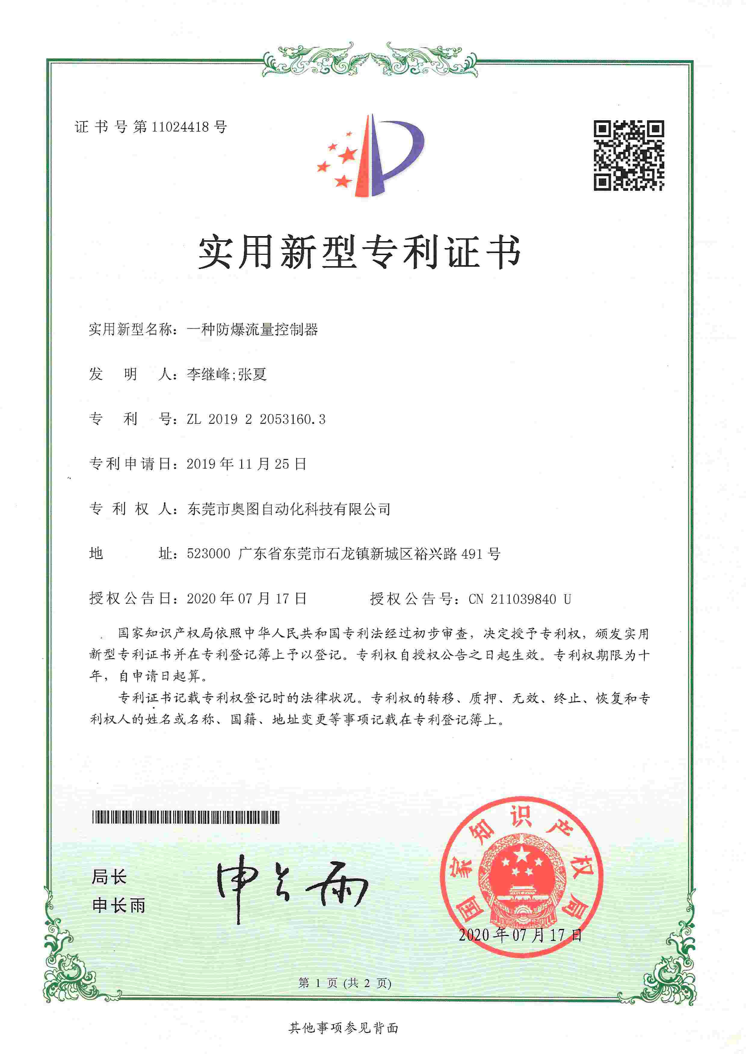 防爆流量控制器專利